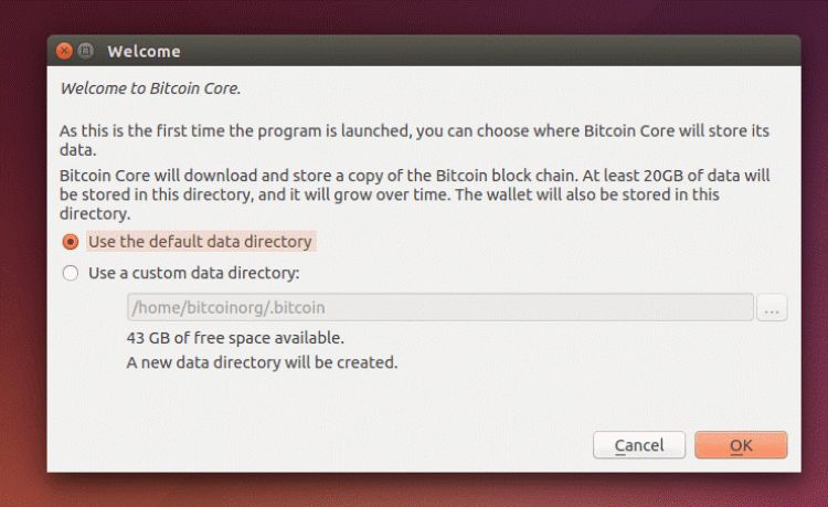 اگر از پارتیشن‌های مختلفی استفاده نمی‌کنید، با کلیک برروی OK فایل‌ها در آدرس پیش‌فرض ذخیره می‌شوند، اما در غیر این‌صورت می‌توانید دایرکتوری مورد نظر خود را برای ذخیره‌سازی داده‌هایی مثل بلاکچین شبکه و کیف‌پولتان، انتخاب کنید.