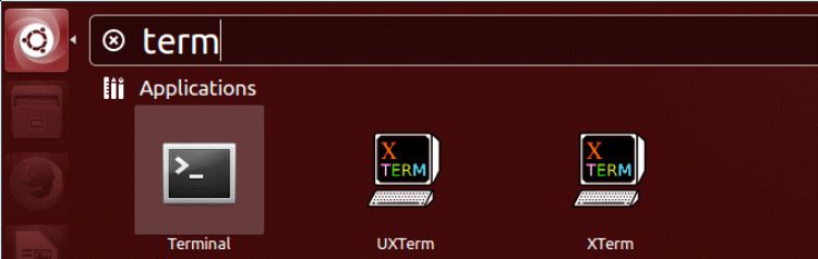 ابتدا روی swirl کلیک کرده و Dash را اجرا کنید. با تایپ term یکی از ترمینال‌ها را باز کنید.