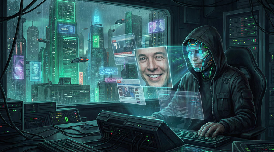 با پیشرفت خیرهکننده هوش مصنوعی، کلاهبرداران دیگر نیازی به پنهان شدن ندارند. آنها با استفاده از تکنولوژی دیپفیک، ویدیوهای زنده (لایو) از چهرههای سرشناس مثل ایلان ماسک، مایکل سیلور، ویتالیک بوترین یا برد گارلینگ هاوس میسازند. سپس کانالهای یوتیوب یا حسابهای توییتر دارای تیک آبی را هک کرده و این ویدیوها را در آنها پخش میکنند.