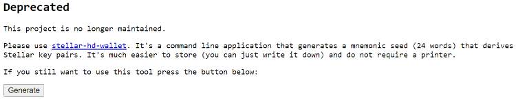در مرحله اول باید به صفحه اینترنتی stellar.github.io/paper-wallet مراجعه کنید. در این مرحله با چنین صفحه‌‌ای مواجه می‌‌شوید.