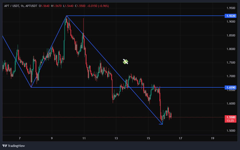 تو تحلیل قبلی گفتم که «APT میتونه تا محدوده پر از نقدینگی ۱.۷۵ دلار حرکت داشته باشه و از اونجا با گرفتن سیگنال، شورت رو داشته باشیم.» خب همین اتفاق افتاده و و منتظر سیگنال فروشیم!