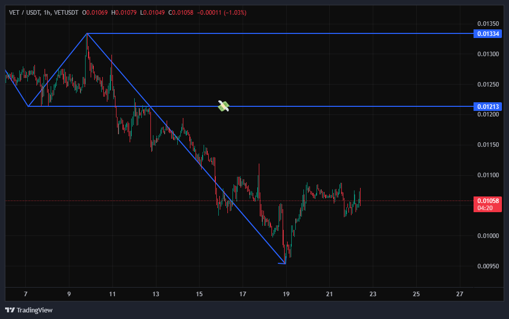 تو تحلیل قبلی گفتم: اگر روند اصلاحی از همین نواحی شروع بشه، VET میتونه تا محدوده پر از نقدینگی ۰.۰۱۲ دلار حرکت داشته باشه و از اون محدوده شورت رو داشته باشیم. خب همین اتفاق افتاده و من خودم وارد شدم. اگر مایل به ورود هستید میتونید تو ۰.۰۱۱۲ ورود کنید تا تارگت کف!