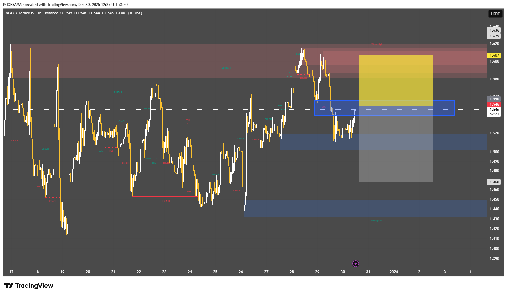 طبق سناریوی اعلامشده، قیمت NEAR پس از برداشت نقدینگی از سقف وارد ناحیه عرضه شد و با تأیید ضعف مومنتوم، حرکت اصلاحی مورد انتظار را بهطور کامل انجام داد؛ ستاپ صادرشده بدون فعال شدن حد ضرر، تمام تارگتها را پوشش داد که نشاندهنده دقت ناحیه ورود و انطباق کامل رفتار قیمت با ساختار تحلیلی بود. این آپدیت صرفاً جهت اطلاعرسانی و ثبت عملکرد ستاپ ارائه میشود.