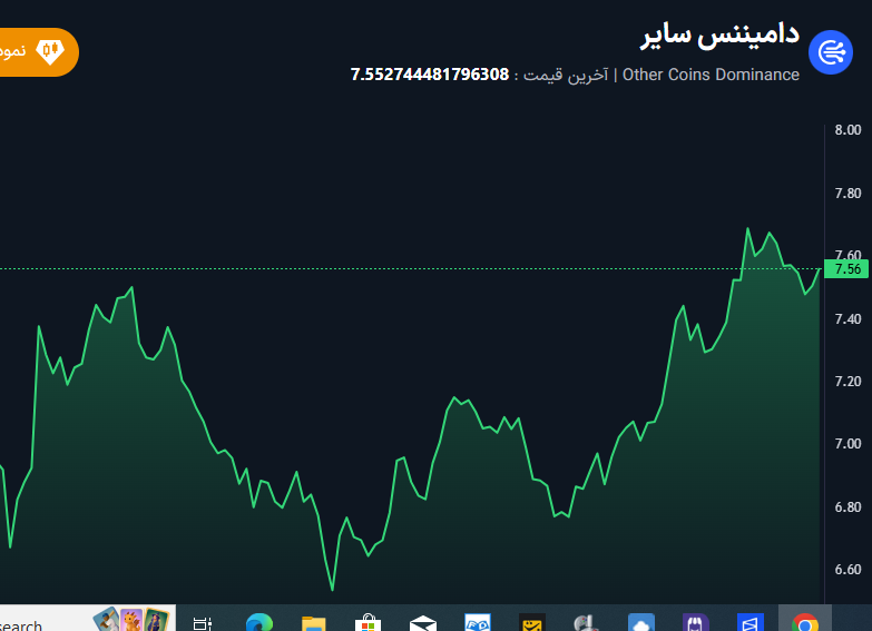 در مورد آلت کوین ها ما شاخصی به نام other .d داریم که نشانگر مارکت کپ سایر آلت کوین ها غیر ۱۰ رمز ارز برتر بازار است با این که وارد فاز صعودی شده است ولی با این حال اکنون در ۷.۴۵ است تا زمانی که بالای محدوده عددی ۱۰ الی ۱۱ نباشد نمی توان انتظار آلت سیزن و رشد آلت کوین ها را داشت
