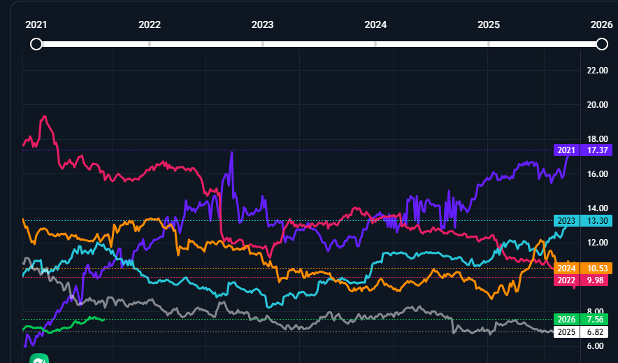 همانگونه که مشاهده میکنید نمودار بیت کوین در تایم فریم هفتگی وارد یک کانال نزولی شده به اصطلاح بیت کوین پس از سیکل صعودی بیت کوین که ۳ سال به طول انجامید اکنون در فاز نزولی فرو رفته است به اثبات رسیده که به علت هاوینگ و عوامل دیگر بازار سیکل های ۴ ساله دارد که اکنون در یک سال نزولی قرار دارد سقف قیمت بیت کوین بیش از ۱۲۶۰۰۰ دلار بوده و تا کنون کفی که تشکیل داده یعنی ۶۰۰۰۰ دلار نزدیک به ۵۳ درصد پایین تر از سقف تاریخی تشکیل شده است در طی سیکل های قبلی به ترتیب در ۲۰۱۸ نزدیک به ۸۴ درصد و ۲۰۲۲ نزدیک به ۷۷ درصد بیت کوین دچار ریزش شد این موضوع را هم باید در نظر گرفت که این ماجرا قبل از پذیرش نهادی و ورود بیت کوین و بازار رمز ارز به etf ها بوده به طور کلی انتظار ریزش اندکی کمتر و در یک باکس مشخص را داریم یعنی دیدگاه را اگر بازار را از اکتبر ۲۰۲۵ نزولی بدانیم باید پذیرفت که بر اساس تاریخچه بیت کوین انتظار مدتی باقی ماندن در این فاز نزولی را داریم به گونه ای که احتمالا تا ۸ ماه آینده وضعیت بیت کوین در فاز های ابتدا ورود به یک کانال قیمتی و رنج زنی در آن پس از آن از دست دادن حمایت ها و ریزش به قیمت پایین تر را داشته باشیم هر چند در کوتاه مدت شاید نوسانات مثبتی هم داشته باشد ولی برایند حرکت منفی خواهد بود ولی به صورت کلی برای دوستانی که قصد خرید اسپات روی بیت کوین را دارند