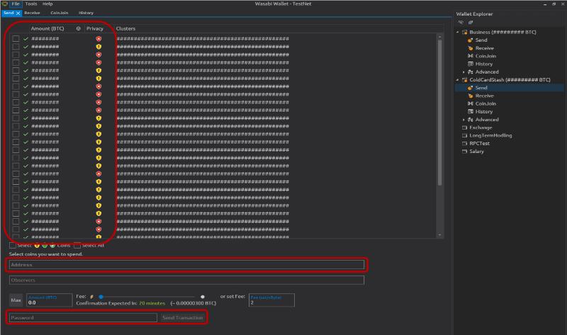 ارسال بیت کوین در کیف پول واسابی (Wasabi wallet)