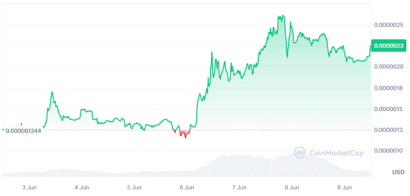 قیمت میمکوین بوبو (BOBO) طی یک هفته و یک ماه گذشته به ترتیب 71.8 و 43.9 درصد افزایش یافته که یکی از بهترین عملکردها در این مدت محسوب میشود. این توکن در حال حاضر 0.0000023 دلار قیمت دارد.