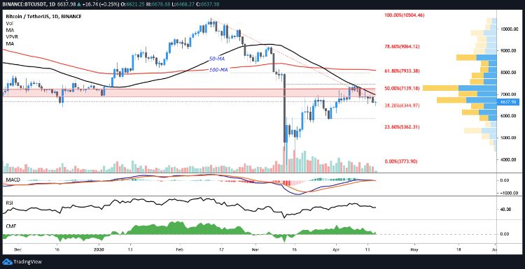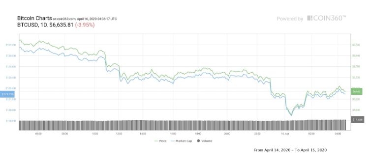 در 24 ساعت گذشته قیمت بیت کوین با 6,498 دلار به کمترین میزان آن در دو هفته اخیر رسید. یک اصلاح قیمت خفیف هنگام بسته شدن قیمت روزانه اتفاق افتاد و با این وجود بیت کوین در بیشتر روز با قیمتی بین 6,680 تا 6,780 دلار معامله شد. حرکت نزولی اتفاق افتاده چندان دور از انتظار نبود چرا که این روند افت روزانه از 10 آپریل شروع شده است.