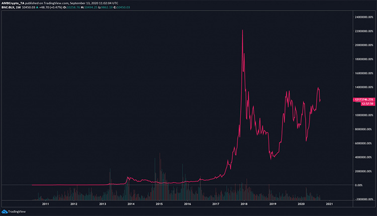 از زمان شروع به کار، رشد بیت کوین، بزرگ‌ترین رمزارز جهان 12 میلیون درصد بوده است و حتی این میزان براساس بالاترین نرخ بیت کوین هم نیست. اما هر چند این میزان رشد بیت کوین تعجب آور است ولی نکته درخور توجه این است که این موفقیت از روی طرح قبلی و نه صرفا یک اتفاق بوده است.