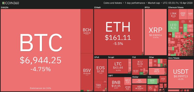دادههای منتشر شده توسط Cointelegraph Markets و Coin360 نشان میدهد که قیمت بیت کوین حالا از نوار 400 دلاری بین 7,100 و 7,410 دلار، که انتظار میرفت برای بیشتر هفته در آن باقی بماند، پایینتر رفته است.