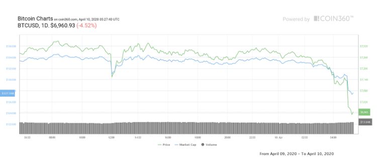10 آپریل قیمت بیت کوین در چند دقیقه برای اولین بار در چهار روز اخیر به کمتر از 7000 دلار سقوط کرد.