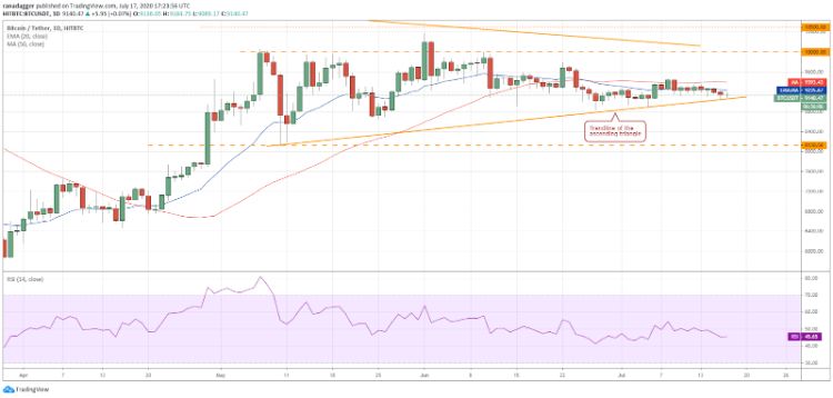 بیت کوین در چند روز گذشته به مرور زمین را خالی کرده و حالا به خط روند مثلث صعودی رسیده است. اگر این حمایت شکسته شود، روند صعودی را ازبین خواهد برد، که یک نشانه نزولی است.