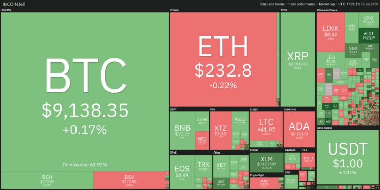 عملکرد روزانه بازار رمزارزها. منبع: Coin360