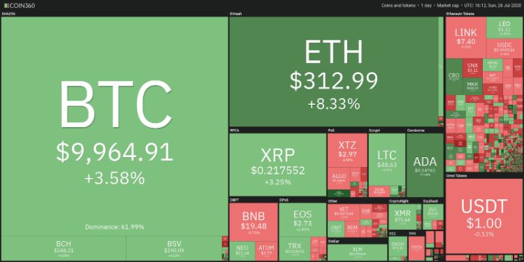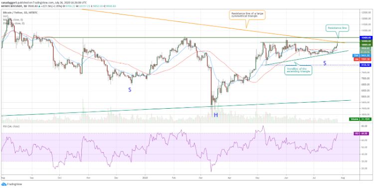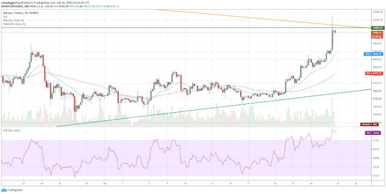 قیمت بیت کوین بالاخره از 10,000 دلار گذشت و تحلیلگران معتقدند بیت کوین و آلت کوین ها همراه با هم، به افزایش قیمت ادامه خواهند داد. در این مطلب، به بررسی تحلیل تکنیکال قیمت بیت کوین و تحلیل تکنیکال قیمت اتریوم  در تاریخ 6 مرداد (27 جولای)، می‌پردازیم.