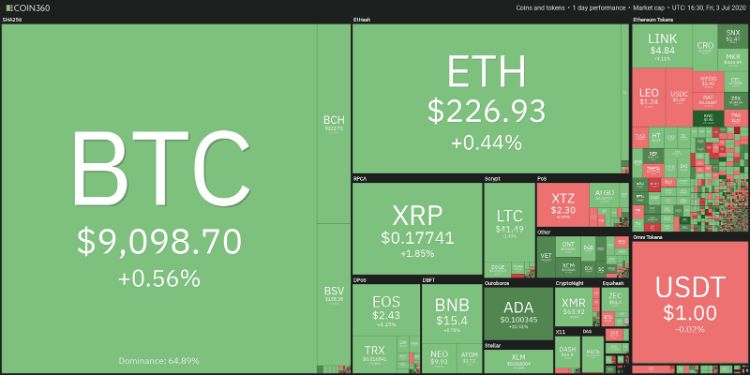 گاوها (حامیان بازار صعودی) نتوانستند بیت کوین را به بالاتر از میانگین متحرک 20 روزه (9,270 دلار) برسانند، که نشان میدهد خرسها مصرانه از این مقاومت دفاع میکنند. با این وجود، یک نشانه کوچک مثبت این است که خریداران دوباره وارد بازار شدند و در نقطه کف 2 جولای در کمتر از 9,000 دلار، خرید انجام دادند، که نشان دهنده افزایش جمعآوری در سطوح پایینتر است.