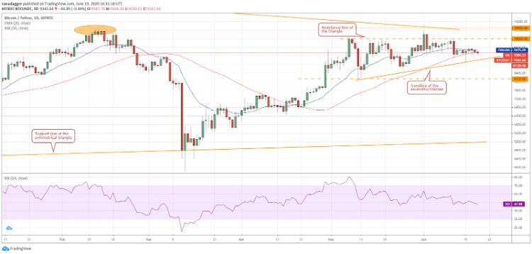 بیت کوین در روزهای اخیر، در میانگین متحرک نمایی (EMA) بیست روزه (9,476 دلار) با مقاومت شدیدی روبرو شده است. این EMA بیست روزه و شاخص RSI پایین‌تر از سطح 50، نشان می‌دهند که گاوها (حامیان بازار صعودی) درحال ازدست دادن موفقیت خود هستند.