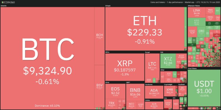 عملکرد روزانه بازار رمزارزها. منبع: Coin360