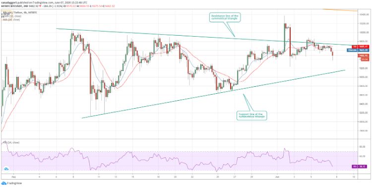 از آن زمان، جفتارز بیت کوین و دلار آمریکا با قیمتی بین میانگین حرکت 20 روزه (9,423 دلار) و خط مقاومت مثلث متقارن، معامله شده است. این به معنای خرید در کف، در سطوح پایینتر است.