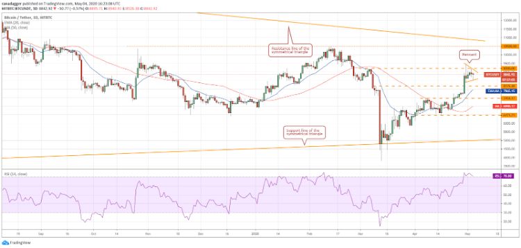 بیت کوین در روز سوم می از 9,190.82 به پایین برگشت. تریدرها ممکن است سود جزئی را در این سطح برده باشند، همانطور که در تحلیل قیمت بیت کوین قبلی پیشبینی شده بود.