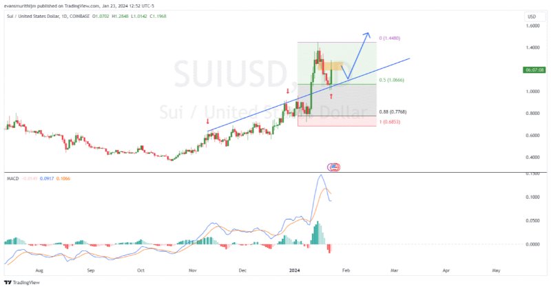 پیشبینیهای صورتگرفته برای قیمت سویی، همچنان یک روند صعودی را برای این ارز دیجیتال نشان میدهند. در حال حاضر، قیمت در تایم فریم روزانه بالاتر از میانگین متحرک نمایی ۵۰ است. در این میان، افزایش قابلتوجه حجم معاملات روزانه سویی به بیش از ۷۹۰ میلیون دلار هم نشاندهنده علاقه فزاینده سرمایهگذاران به این ارز دیجیتال است.
