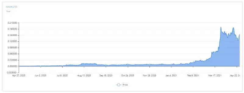 توکن اختصاصی ارز دیجیتال انکر، توکن ANKR است. ارزش کل بازار توکن ANKR بیش از یک میلیارد دلار است. نمودار قیمتی این رمزارز را در یک سال گذشته میتوانید در تصویر زیر مشاهده کنید.