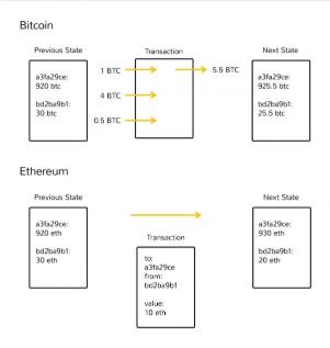 اتریوم (ETH) از بیت کوین (BTC) الهام گرفته شده است. هر دوی آنها ارز دیجیتال هستند. اتریوم از همان فناوری پشت بیت کوین، یعنی بلاکچین، استفاده می‌کند. در این فناوری، برای غیرمتمرکزسازی شبکه از یک دفتر کل مشترک و غیرمتمرکز عمومی استفاده می‌شود؛ بنابراین تحت کنترل فقط یک نهاد قرار ندارد.