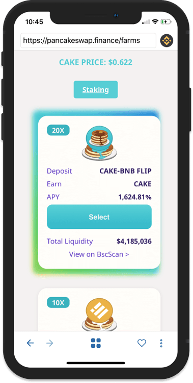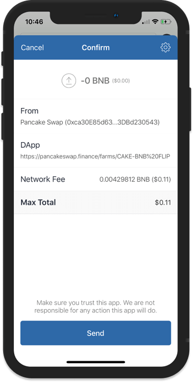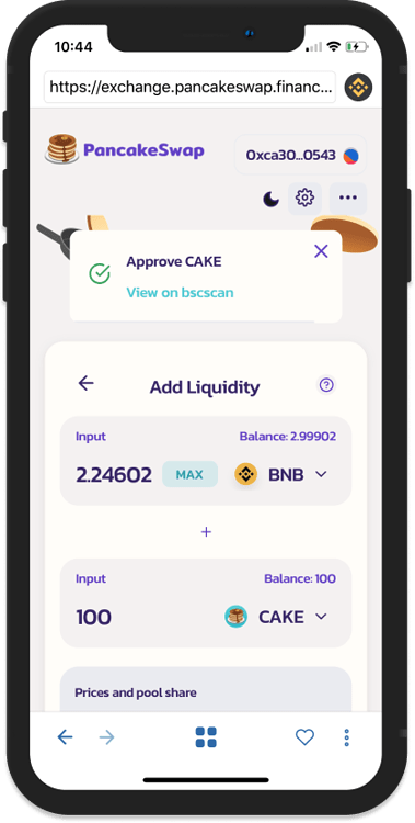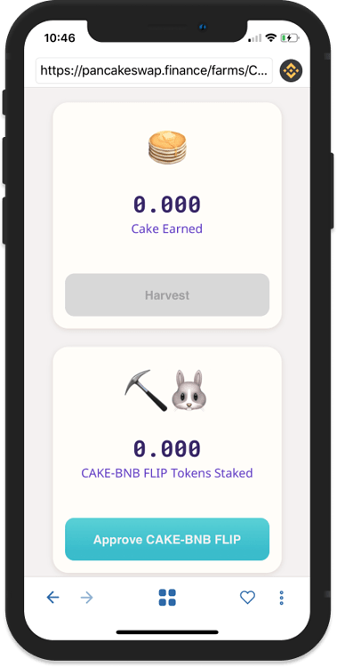 گزینه فارم CAKE-BNB FLIP را انتخاب کنید و با استفاده از گزینه Approve این فرآیند را تأیید کنید.