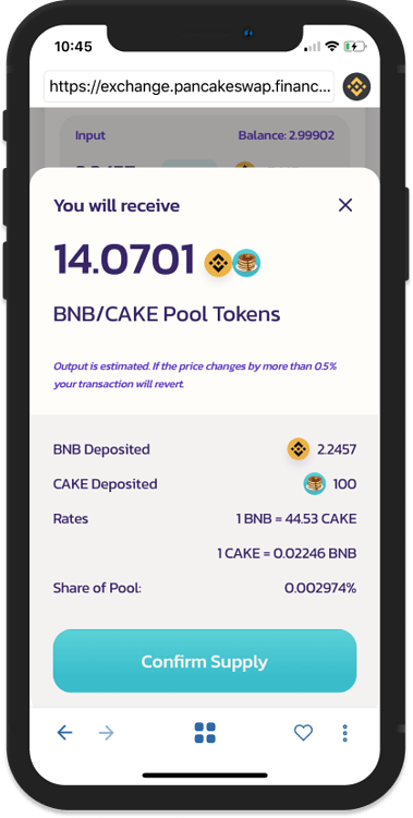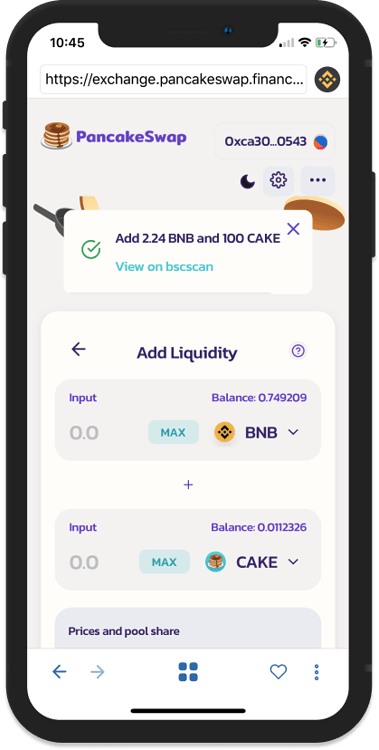 حال با طی کردن این مراحل، شما یکی از تأمینکنندگان نقدینگی در پلتفرم ارز دیجیتال پنکیک سواپ هستید و در قبال این کار مقداری از کارمزدهای این شبکه را به عنوان پاداش دریافت میکنید. برای این کار توکنهای اختصاصی با نام توکن فلیپ (FLIP) طراحی شده است.