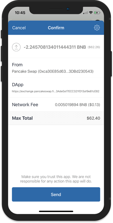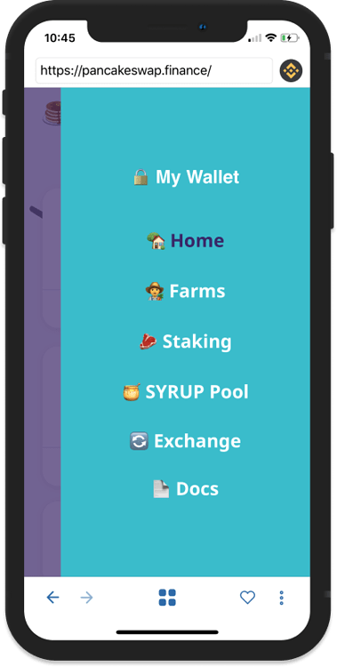 در این قسمت قرار است به عنوان نمونه از کیف پول تراست والت استفاده کنیم. ابتدا اطمینان یابید که در حال استفاده از آخرین نسخه کیف پول تراست هستید. از کیف پول تراست خود و با استفاده از قسمت مربوط اپلیکیشنهای غیرمتمرکز (DApps)، گزینه PancakeSwap را انتخاب کنید. همچنین میتوانید برای این کار به وبسایت رسمی این پلتفرم معاملاتی به آدرس exchange.pancakeswap مراجعه نمایید.