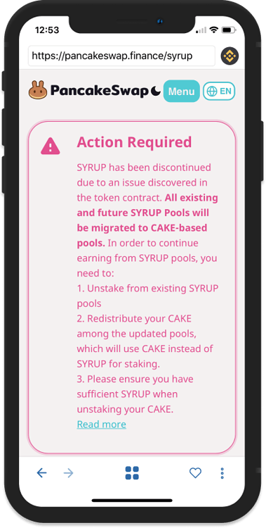 سلام من از تراست والت که pancake swap را میزنم این ارور میده که سرتیفیکت این سایت معتبر نیست و ممکنه اطلاعات شما دزدیده بشه. بعد از reload کردن وقتی باز میکنه کانترکت توکن را که میزنم پیدا نمیکنه.ممنون میشم راهنمایی کنید.