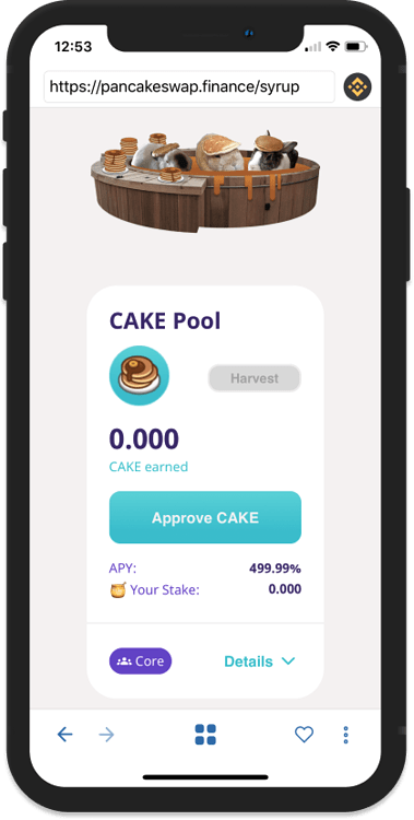 با استفاده از گزینه Approve فرآیند استیکینگ توکن کیک را تأیید کنید.