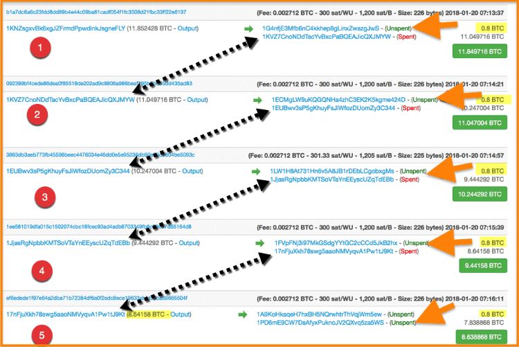 مکانیسم بلاکچین بیت کوین به این شکل است که شما میبایست به جای ارسال 1.5 بیت کوین تمام 5 بیت کوین را خرج نمایید و امضای خود را ارائه کنید که 1.5 بیت کوین برای انتقال در نظر گرفته میشود و 3.5 بیت کوین باقی مانده به کیف پول شما باز میگردد. به این جابجایی، فرستادن سرمایه باقی مانده به آدرس اول گفته میشود. اگر به تراکنشهای انجام شده در کیف پولتان دقت کرده باشید، متوجه میشوید زمانی که انتقالی انجام میدهید، هیچوقت دو تراکنش در کیف پول انجام نمیشود. باید گفت این مسئله صحیح است؛ زیرا کیف پولهای جدید تمام این کارها را در پشت صحنه انجام میدهند و میتوانید تمام عملیات انجام شده در تراکنش را در اکسپلورر بلاک مشاهده کنید.